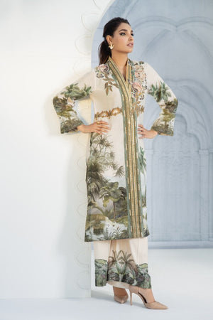 Effortlessly chic and comfortable straight shirt silhouette beautiful floral modern print on cotton silk fabric vintage floral velvet print appliqued on the galla enhanced with resham thread antique gold resham and sequin handmade lace on the galla. Can be paired with gorgeous printed pants as shown in the picture. Best for summer wear, collage wear, brunches and hi-teas.