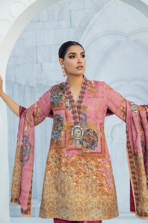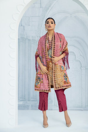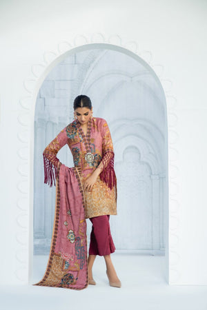 A gorgeous composition of beautiful shades of mauve and gold, creating a perfect style for the upcoming season. Handworked motif on neckline. Can be paired with stole and pants as shown in the picture. Best for summer wear, collage wear, brunches and hi-teas.