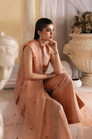 Step into timeless luxury with our jamawar shirt and pants, elegantly complemented by a pure organza dupatta. This exquisite ensemble merges rich texture with delicate finesse, perfect for a sophisticated and memorable look.