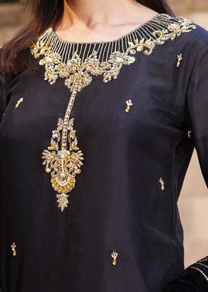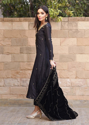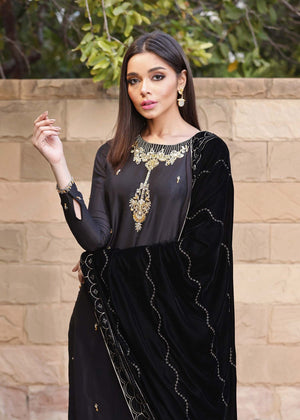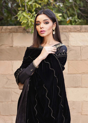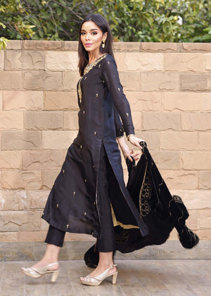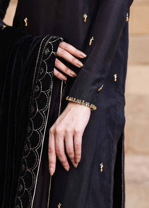 Cut from pure sheesha silk, the Elif shirt boasts a fully hand embellished neckline. Subtly shimmering Swarovski crystals and sequins adds an eye-catching mystique.Pair the look with an exclusively designed in-house shawl on luscious velvet. Accentuated with hand embellished glistening gold sequins, trimmed with a delicate tilla border in gold making this shawl the most unique statement piece in your wardrobe.