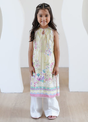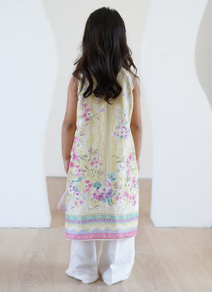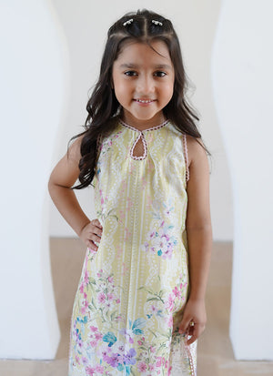 Infused with FTA’s signature charm and dreamy flair, the Elowyn ensemble is pure magic for little style stars. This soft kiwi kurta, crafted from printed raw silk, blends timeless tradition with a modern, youthful twist. The delicate print adds an understated elegance, while the luxurious fabric ensures all-day comfort—perfect for festive celebrations or special family moments. Featuring a relaxed silhouette, it’s playful yet graceful. The kurta is a delightful pick for any young girl who loves to shine with effortless style and comfort.