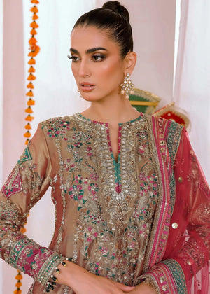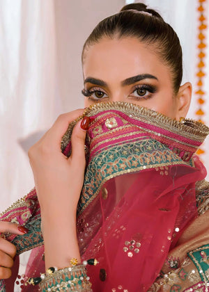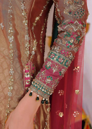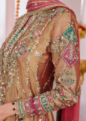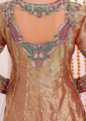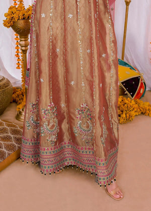 This look exudes effortless elegance, making it perfect for any occasion. The long airline shirt, expertly crafted from tissue fabric, showcases a sophisticated interplay of colors that enhances its refinement. Paired with the Jamawar Capri and a striking, color-blocked heavy Mukesh Duppatta, this ensemble creates a beautifully balanced silhouette that commands attention.