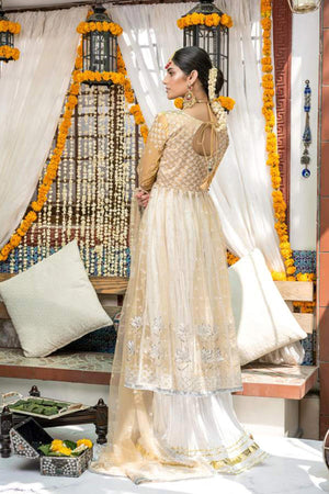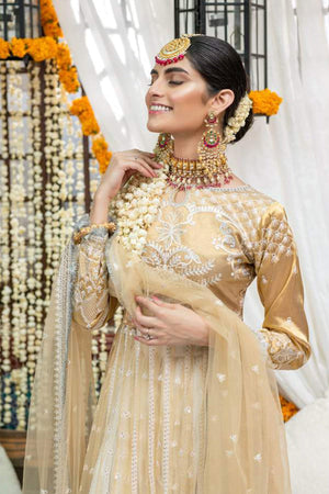 She radiates ethereal elegance wearing a Net Kalidar Anarkali featuring intricate embroidery with Zari and Thread work paired with a crinkle sharara with gota on the borders.Ensemble: 3 PC