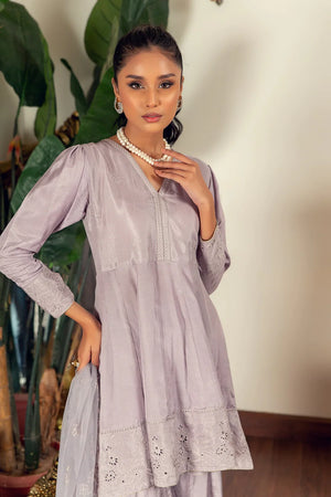 An outfit crafted with utmost attention to details a festive look that is perfect for a Eid. This peshwas is cut from a cotton silk that is rendered with delicate cutwork and schiffli embroidery. Complete the look with a cutwork net dupatta, paired with matching Gharara pants.Material : Cotton Silk