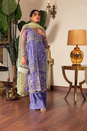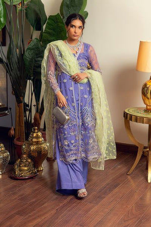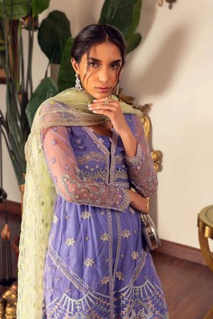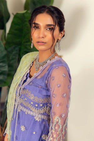 It's all in the details- rendered with beautiful Lavender net with thread and sequence embroidery, this front open shirt is a sure to be a festive favorite. Pair it with bellbottoms pants and contrasting mint green embroidered net dupatta.Material : Net