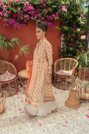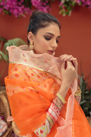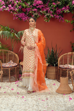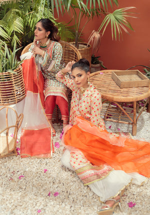 Embrace the simple elegance of the design and pair with our cotton silk crushed pants (as shown) paired with a ruffled organza duppatta.