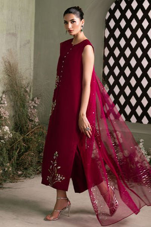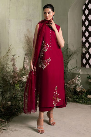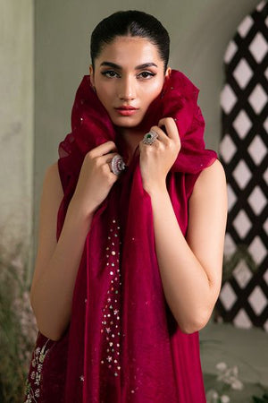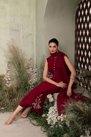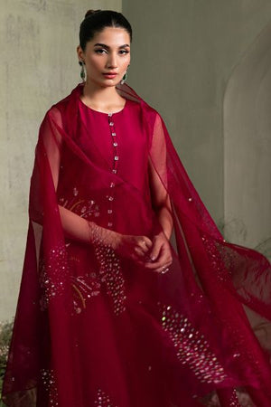 Immerse yourself in the beauty of nature with this stunning magenta long shirt, showcasing exquisite hand embroidery and intricate hand embellishments that evoke the allure of the forest. The shirt's vibrant hue and organic motifs transport you to a whimsical world, while the paired trousers provide a sleek, modern contrast. Completing this enchanting ensemble is a breathtaking dupatta, adorned with a profusion of embroidery that adds depth and texture. Perfect for formal events, weddings, or cultural celebrations, this outfit embodies the essence of natural elegance.