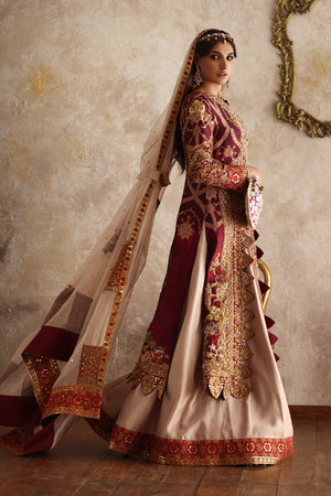 Pure printed silk outfit inspired by Mughal opulence, elevated by in-house embroidery featuring Nakshi, Dabka, and Zardozi work, exuding timeless elegance.