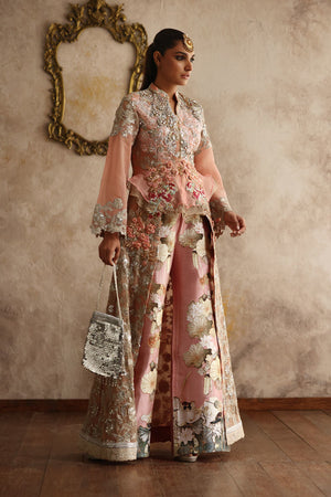Pure chiffon fabric boasting in-house embroidery and hand-touching details, paired with elegant organza sleeves and intricate Tilla outlining, creating a truly modern and sophisticated look.