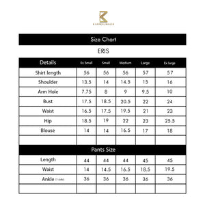 This 3 piece stitched outfit includes front open organza gown with embroidered base and hand embellishments. The glimmering outfit is beautifully elaborated with pearls, sequins, and beads. The shirt is in organza with embellishments. To complete the look, “Eris” is paired with flared Korean silk pants.