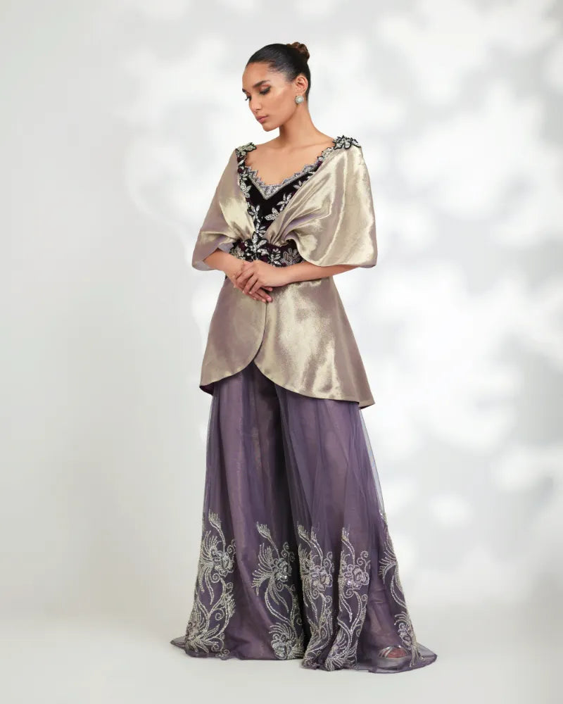Paired With: Handworked Kutdana Crop Top & Gharara Pants, Velvet Crop Top & Wide Leg Net Gharara Pants