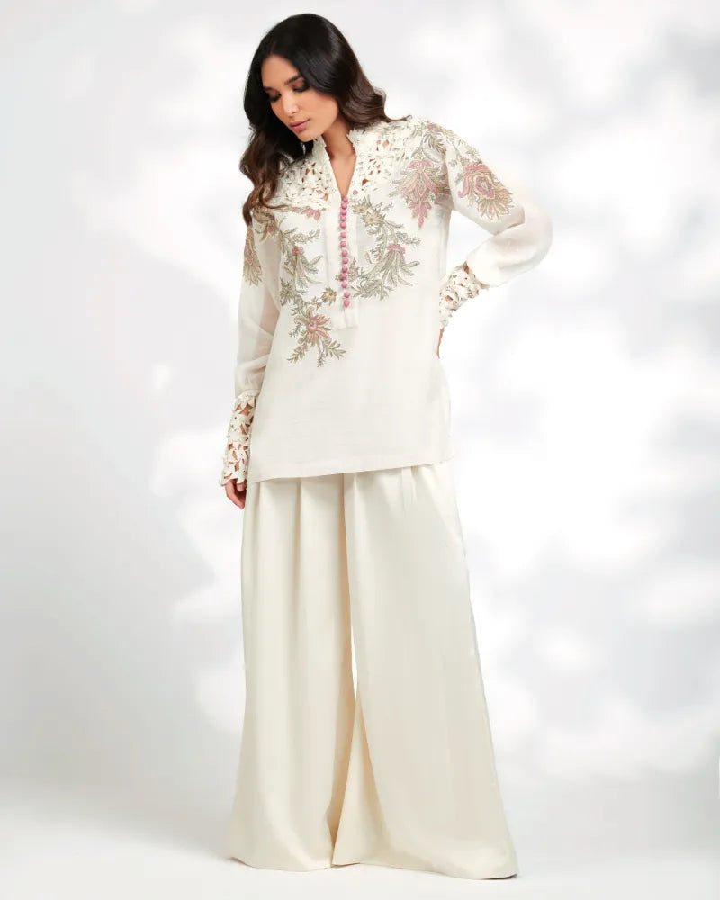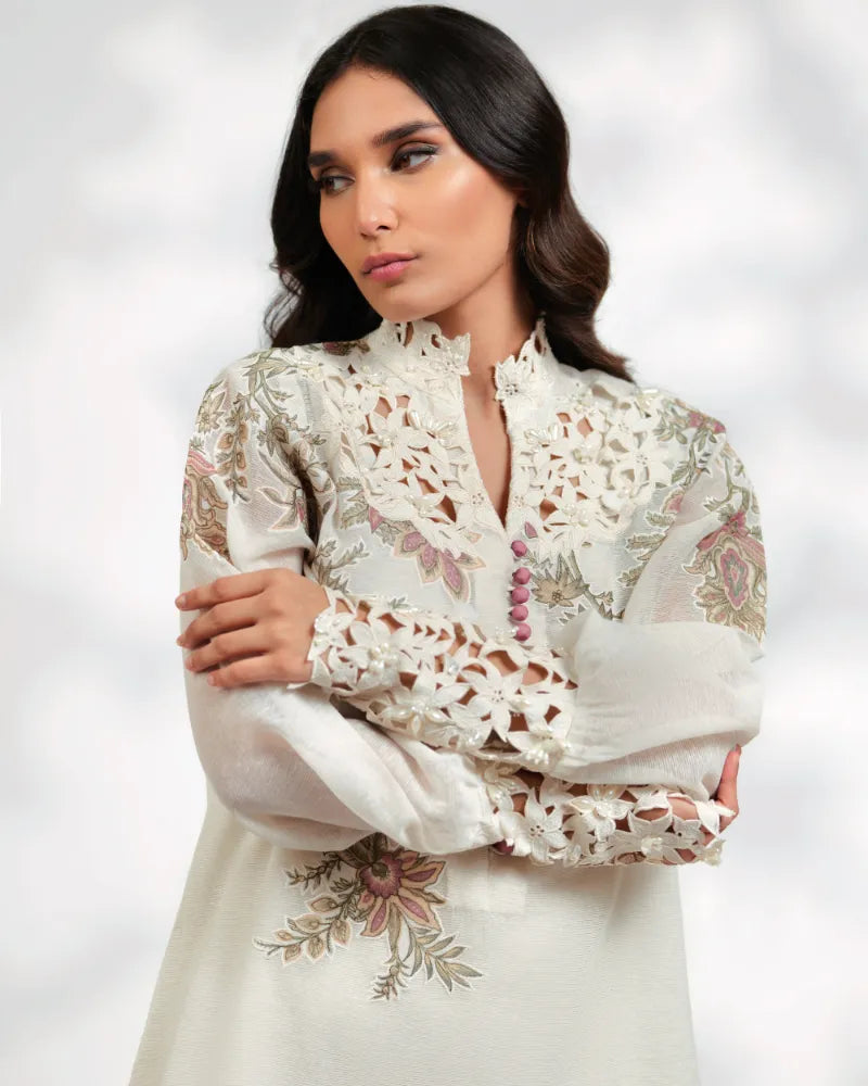 • Cutwork Embroidery on Neckline & Cuffs