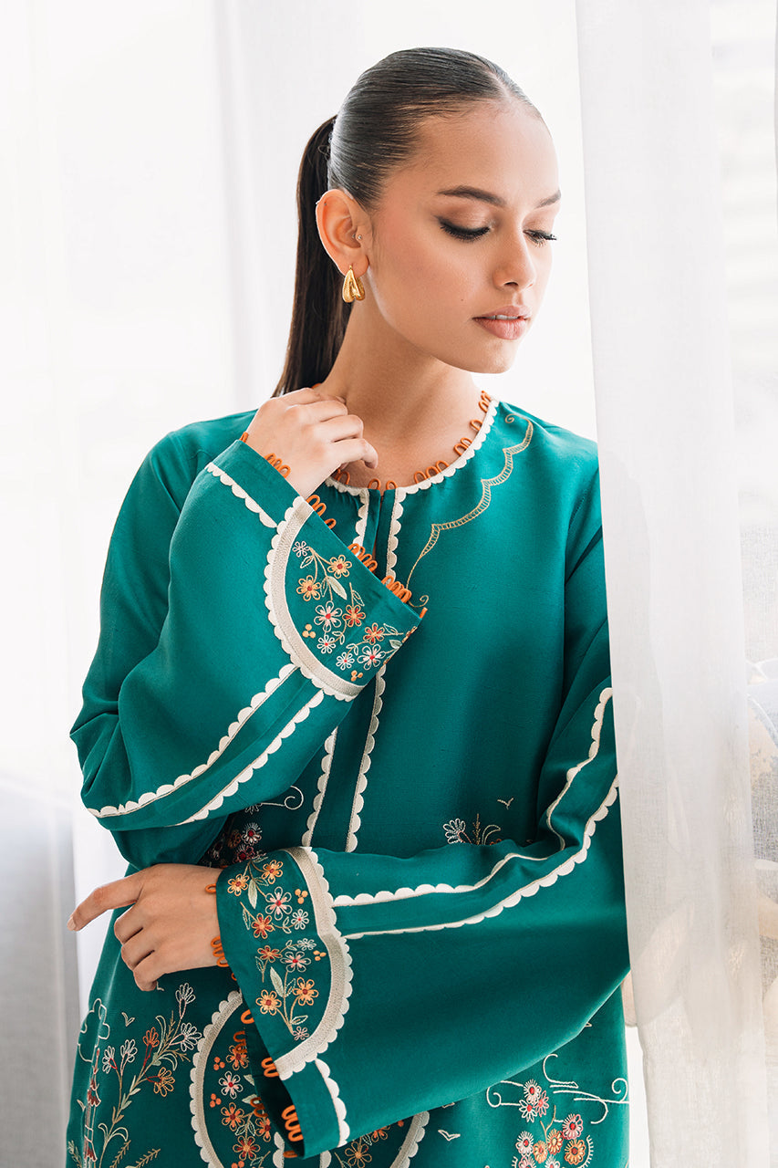 'A relaxed silhouette cut from rawsilk, this emerald green shirt is adorned with floral embroidery all over and paired with matching culottes.