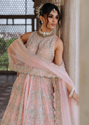Step into modern elegance with this contemporary pink ensemble, a perfect harmony of tradition and innovation. The net shirt, designed with a refined modern cutline, is lavishly hand-embroidered to showcase exquisite craftsmanship. Paired with a luxurious Korean silk lehenga, the look radiates richness and sophistication. A delicately embroidered net dupatta with an all-over spray completes the outfit, adding a graceful charm that makes it ideal for festive occasions, weddings, or formal soirées.