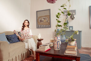 This festive outfit features hand embroidered lotus flowers all over the shirt front with pastel embroidery on the neckline. The fabric has a perfect fall that make this outfit stand out!