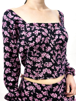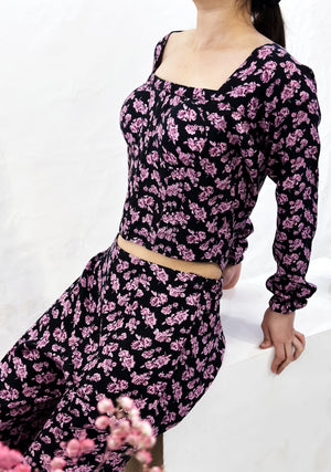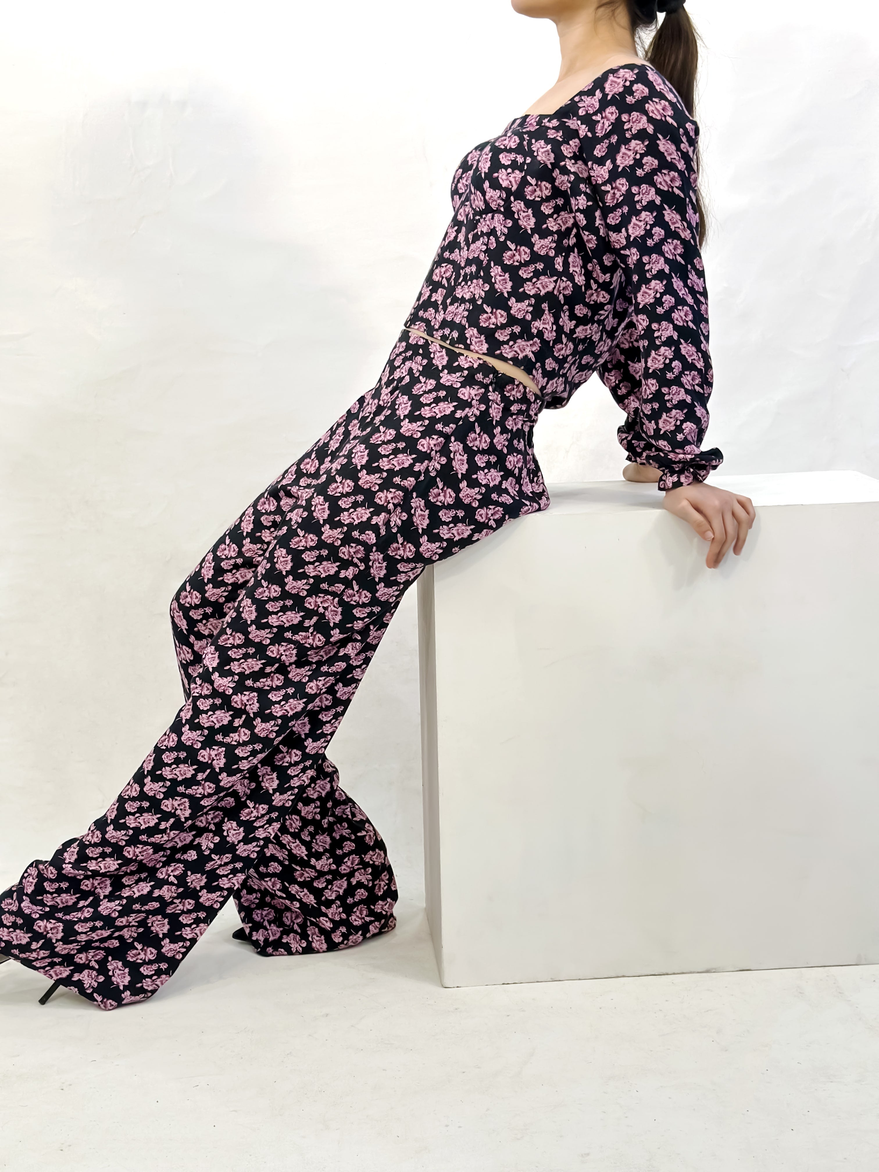 Make a bold statement in our floral lavender and black hues co-ord. Perfect for any occasion, this unique ensemble will elevate your style with its bold floral prints and contrasting colors.