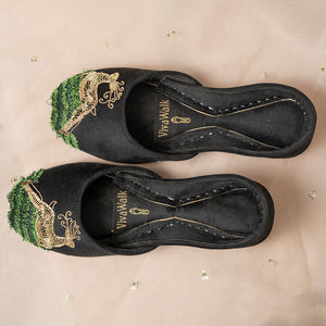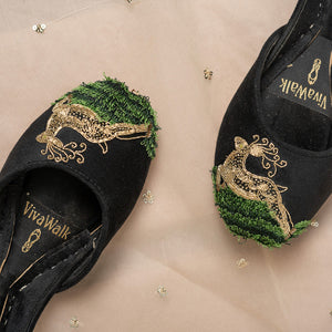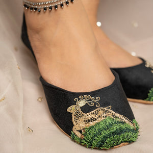 Introducing Forest Muse, a stunning khussa that seamlessly blends tradition with modern style. This vibrant art is adorned with multicolored Resham, Dabka, and Kutdana . The luxurious velvet upper offers a plush feel, while the durable leather bottom ensures comfort. Perfect for special occasions or adding a touch of elegance to your everyday attire, Forest Muse is a must-have for your wardrobe. Elevate your style and step out in elegance by ordering your Forest Muse khussa today!