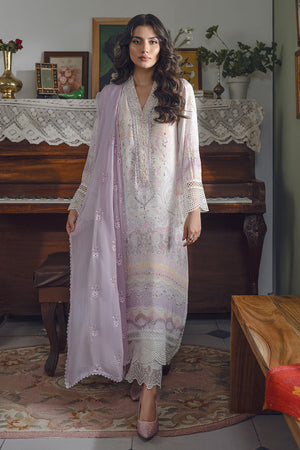 The pristine white background of the kurta provides a clean canvas for the delicate soft lilacs and ivories to shine through. These colors create a subtle, yet elegant look that is perfect for any occasion. The design of the kurta is enhanced by the use of French florals and baroque ornamental details. The intricate floral patterns are inspired by the timeless elegance of French design and are complemented by the elaborate baroque details that add a touch of grandeur and sophistication.