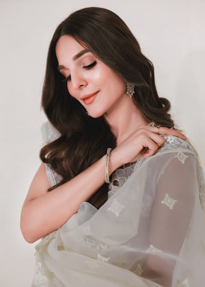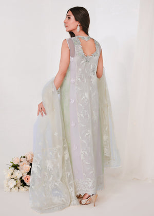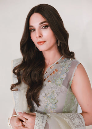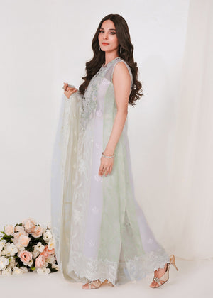Introducing the Geet from the Misha Collection '24 by Reema Ahsan Bridal Lounge, a luxurious three-piece set that epitomizes elegance and sophistication in luxury clothing. This exquisite outfit features a shirt made of organza, beautifully paired with PK raw silk pants and an embroidered organza dupatta. The skin color type enhances the pastel color palette, creating a harmonious and eye-catching look.
