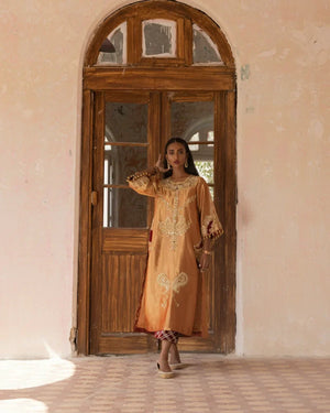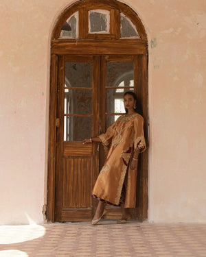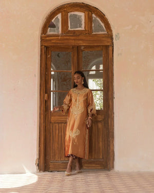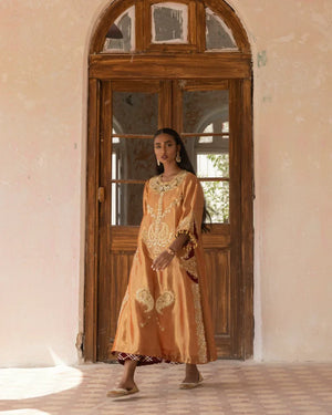 A luxurious masterpiece in pure lamé silk, handworked with detailed zardosi and kamdani detailing and a cutwork detailing on neckline.