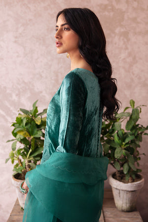 Experience the luxurious allure of this long green shirt, exquisitely made from pure silk fabric adorned with intricate embroidery. Elevate your look further by pairing it with a matching organza dupatta featuring elegant velvet aplic embroidery, as displayed. This ensemble combines the softness of silk with the intricate detailing of embroidery to create a stunning and elegant outfit.