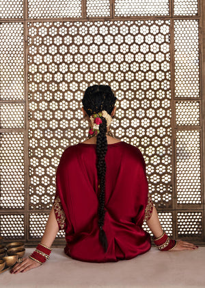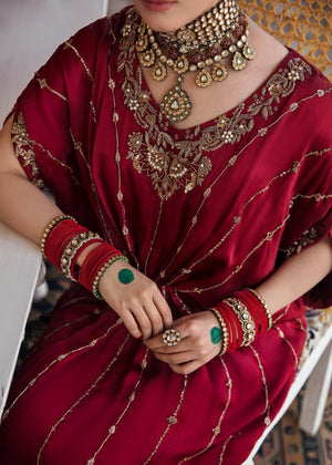 Stand out in the crowd with this one-piece stitched kaftan. Charmingly designed in pure shamose silk fabric and hand-embellished work all over on the front . It can be customized in any color.