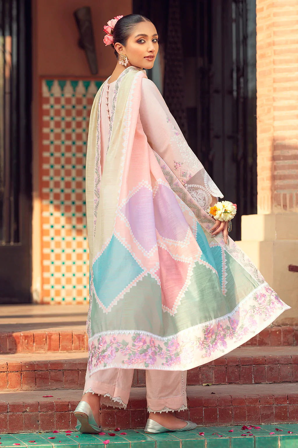 The classic ensemble is bound to blend seamlessly with your festive moment. The floral motifs laid down against dramatic hues on digital print dupatta . This ethereal design embroidery details makes an effortless style statement.