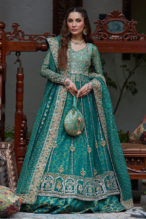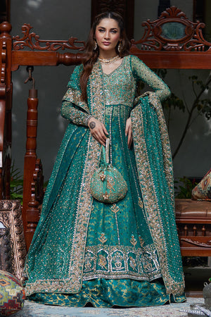 Introducing "Heer," a captivating Mehndi outfit that encapsulates grace and sophistication. The Kalidaar's heavily embellished body, adorned with intricate pita work, chan, and dabka, reflects the craftsmanship of our rich heritage. The ensemble is complemented by a stunning dupatta: The dupatta features opulent dabka, chan, and sequins on a delicate net organza fabric. Embrace the beauty of Heer and let your style narrate an enchanting story of tradition and contemporary allure.
