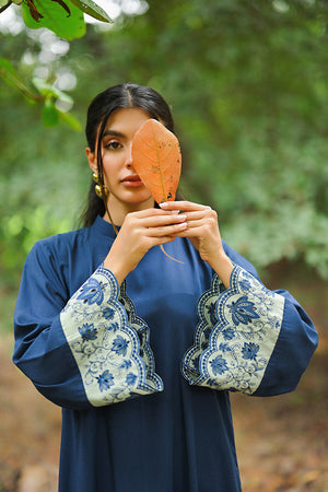 This solid , bold ensemble features straight sleeves with alluring cutwork detailing which epitomizes a minimalist desgin and unmatched comfort.