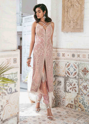 Description: Our new face of the brand Kiran looks ethereal in a signature Zain Hashmi silhouette. Crafted from luminous French tulle, and encrusted with luxurious swaroskis, stones and hand made resham techniques. The glamourous bodycon is paired with hand embellished sheer pants, for the perfect glam look. Beautiful Kiran makes a dramatic yet an ultra feminine statement!