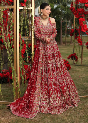 The handcrafted Red pishwas features chevrons derived from sacred geometry, tessellations and various floral motifs meticulously using hand-cut-sequins,pearls crystals, Tilla and stones. The pishwas is paired with the Red structured raw silk Lehngha and composed Dupatta with heavy detailed border and tissue applique.The shipping charges for all articles barring Bridals are as follows: