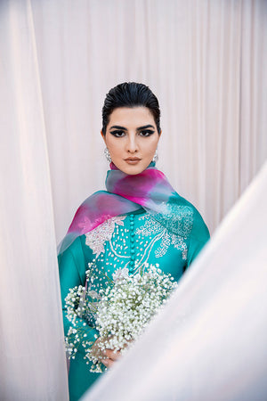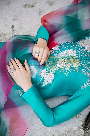 Includes: 2pcs(Embellished Dress, Tie & Dyed Organza Duppata)