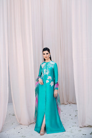 Details: Long Aline Kaftaan Dress With Front Short Slit Open And Heavily Embellished