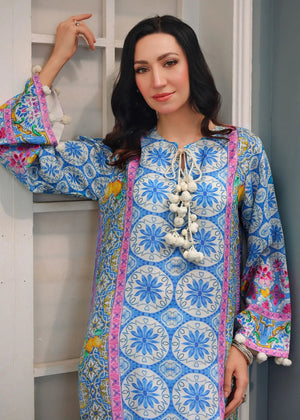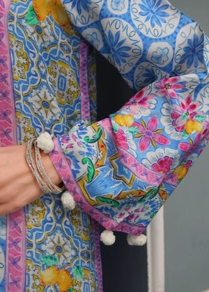 Description: This stunning outfit commands attention with its vibrant summer-inspired colors on luxurious fabric, effortlessly combining grace and sophistication for a truly timeless look.