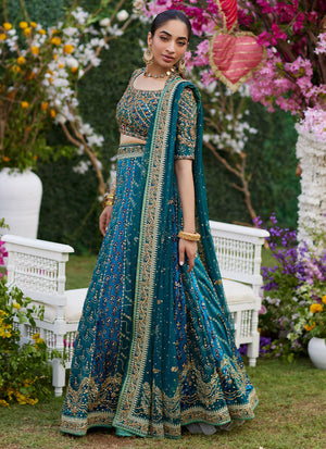 Ishana Teal Lehnga Choli - Amaltas 25 by Farah Talib Aziz