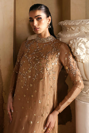 Shine in our golden pure Indian tissue kaftan, featuring intricate detailing that adds a touch of elegance and sophistication. This luxurious piece effortlessly blends opulence with grace for a stunning, standout look.