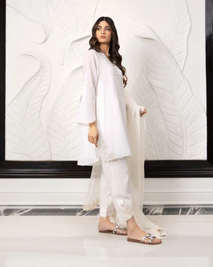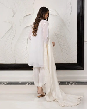 A line short pure voil kurta.with dorri embroidery on front &sleeves.