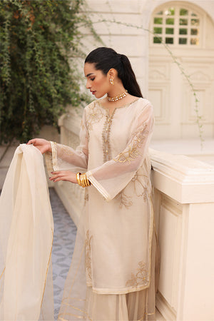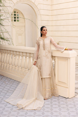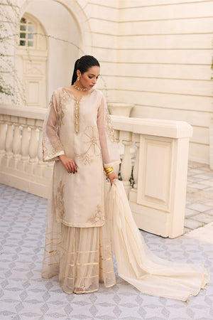 This feminine outfit is all you need its embroidered & emballished with gotta work & pearls enhanced by organza sharara & dupatta.