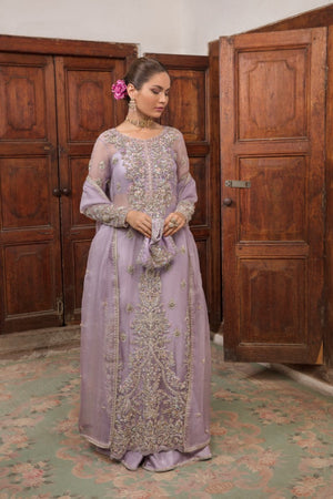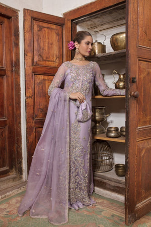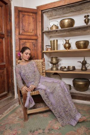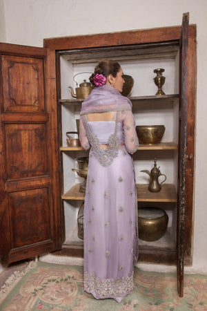 On a pastel tone of lilac, ‘Jamani’ is a classic fully hand embellished silhouette. A delicate spray of sparkle is meticulously added to the shirt, pants and dupatta to complete the outfit. This gleaming accent complements the elegance of the ensemble, making you shine brightly wherever you go. It is paired with flared pants and dupatta, both of which are embellished with intriguing spray design. The stunning four sided hand-embellished dupatta is embellished with a symphony of sparkling embellishments around all borders, lending the ensemble a touch of glamour and elegance.