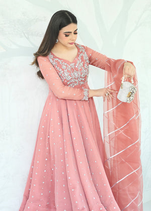 Crafted in a classic pishwas silhouette, Joel radiates vintage opulence, hand embellished bodice and sleeves with resham, tilla and sequins. This set is paired with an Organza dupatta and silk flowy lehnga to complete the look. An outfit that is guaranteed to make heads turn. .- SHIRT LENGTH: 48'