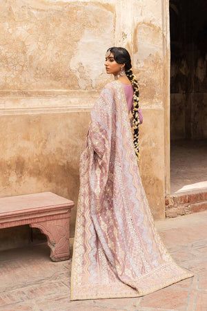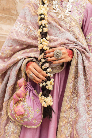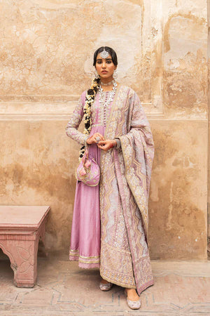 3 piece outfit, Korean Silk Pishwas with embroidered and embellished bodice and sleeves, PK raw silk chooridar, cotton net dupatta with tilla work, embroidery, sitaras and sheeshawork with Jamawar finishing.Collection: Jharokha Eid Collection 2021