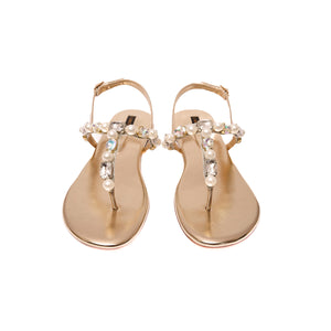 The Kamilla sandal is an updated twist on your classic T-bar shape. It is crafted in luxurious gold leather, featuring gold embellishment. Look no further for a closet classic to add to your forever wardrobe.