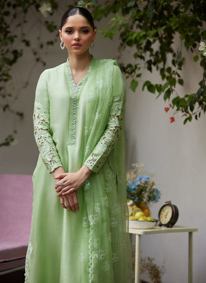 KATYA APPLE GREEN CUTWORK RAW SILK SHIRT WITH ORGANZA DUPATTA - Tara Luxe II by Farah Talib Aziz