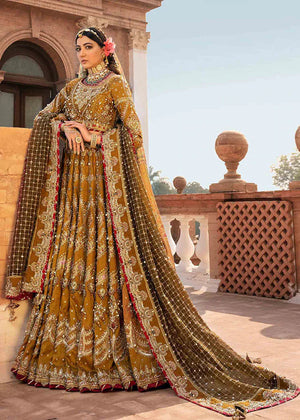 Description: Kesar mahal is a beautiful two toned mustard bridal lehnga choli crafted on a raw silk base. It is heavily hand embellished and composed with our signature jewel motifs with stone work, gotta, dabka and crystals. It comes with a heavy jaal dupatta with accents of pearl and gotta and framed with a hand rendered border. It is paired with a digitally printed zari organza dupatta finished with kiran.This is a 3 Piece Stitched Bridal Outfit