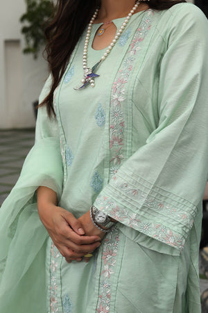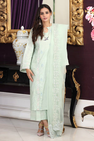 A beautifully put together ice green summer outfit. This khadi silk set is all you need to stay cool. Pleated and embroidered outfit makes you look effortlessly chic.The shipping charges for all articles barring Bridals are as follows: