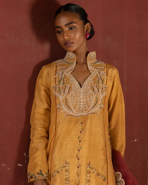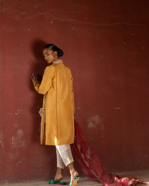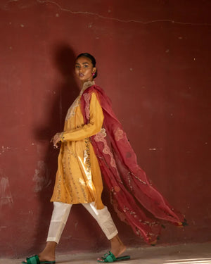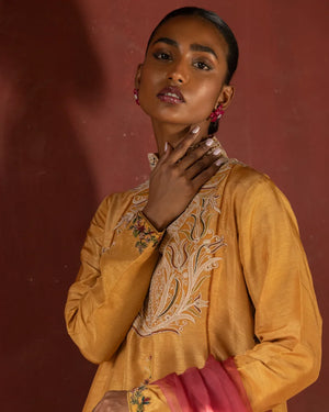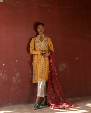 A gracefully modest kurta-style ensemble, elevated by intricate embroidery.