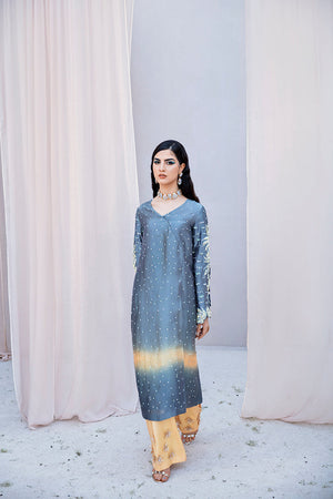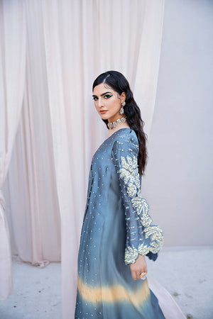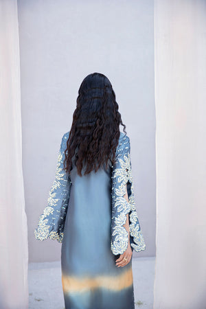 Embellished Sleeves All Made In Fine Tissue Silk Fabric. The Dress Is Uniquely Dip Dyed.