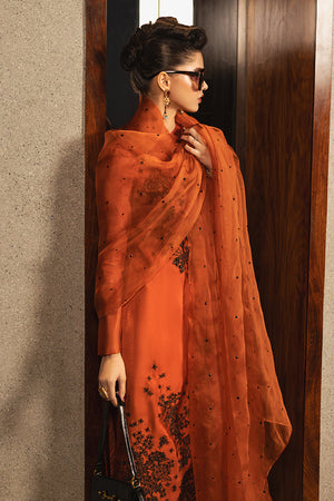 Lady Garden – A celebration of refined elegance and modern charm. This exquisite ensemble features a long, round-neck shirt adorned with intricately embroidered floral bunches, elevated by a delicate keyhole detail and playful dori tassels for added flair. The straight-fit culotte boasts a contrasting floral-embellished border, creating a perfect balance of subtle and striking details. Completing the look is a sheer organza dupatta, adorned with a sparkling sequin spray, adding just the right touch of luxury. Lady Garden is designed to exude sophistication and grace, making it the ideal choice for your statement-worthy moments.