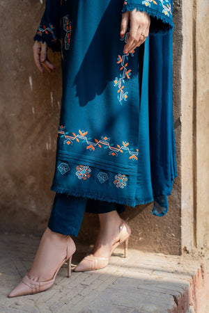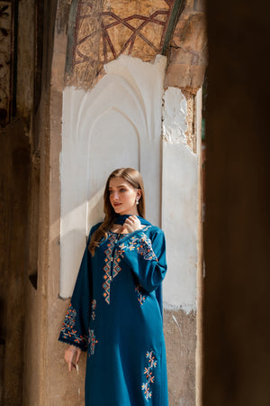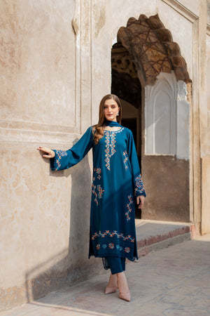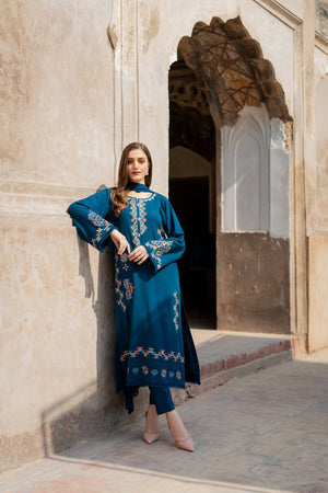The Lamaya set is a beautifully crafted 2-piece outfit in a rich teal blue shade, adorned with delicate hand embroidery along the front, sleeves, daaman, and neckline. Blending traditional detail with a modern silhouette, this ensemble offers timeless elegance with a contemporary touch. Style it with the separately available chiffon dupatta for a complete, polished look.