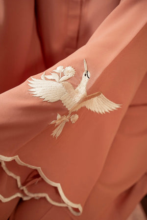 Lauren is a true pastel paradise featuring a loose boxy top with embroidered birdie detail on the sleeves! Vintage’s signature bird embroidery and cutwork sleeves further enhances the overall look. It is a perfect fall pick to make you look effortlessly gorgeous.